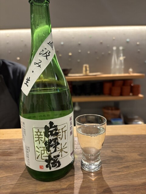 最後の一杯は福井県の黒龍酒造から、純⽶吟醸のうすにごり新酒。。。槽⼝から流れるものを⽣のまま瓶詰したという、しぼりたて原酒独特のみずみずしさ溢れる味わいが〆にぴったり。。。