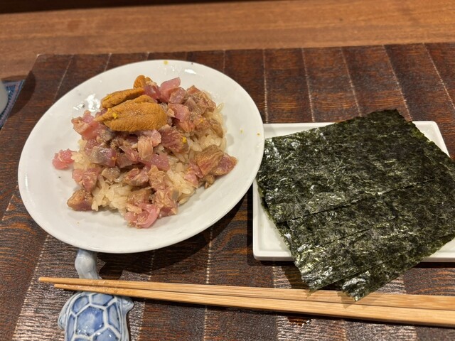 旧店舗時代からお得意のカマトロを使ったちらし寿司。。。炙りやビンチョウ鮪を組み合わせと、トップに雲丹まで乗せたが豪華版。。。濃厚さと爽やかさが両方味わえます。
