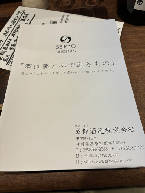 この日の酒造は愛媛県は西条市の成龍酒造という小規模ながらも、その道では非常に高評価な酒蔵。。。ご一緒した皆様は非常に詳しそうなんで、サラリーマン生活で鍛えあげた無難なリアクション(知ったかぶりともいう)で凌ごうと決意したのはここだけの話ですwww