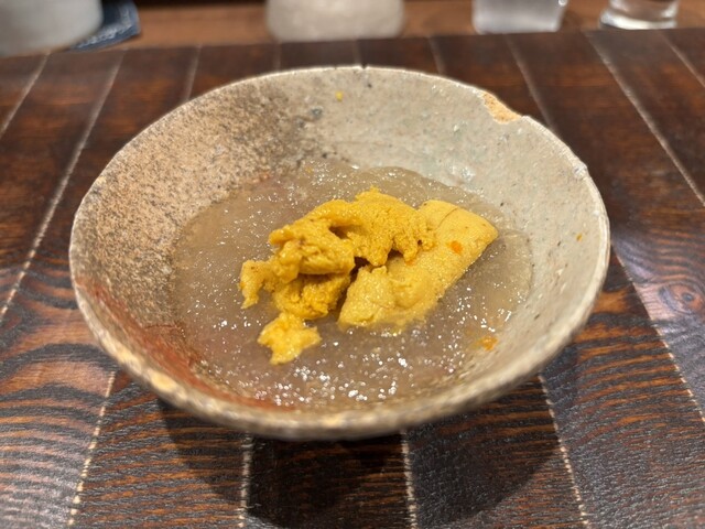 新鮮な生雲丹は日本酒のつまみにピッタリなのは言うまでもないですが、素晴らしい味わいのジュレと合わせることで食感も含め、素晴らしい体験。。。