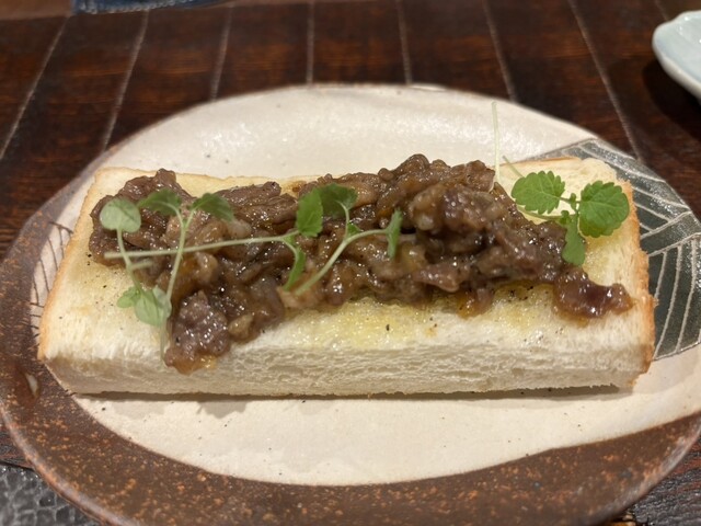 新店舗の近所となった名店の食パンを使ったメニューを今回も楽しむことができました。。。ラム肉をキーマカレー風にスパイスで炒め、レモンバームを添えるエスニック系の美味さ。。。強烈な具材を受け止めてかつ、主張しゅる食パンのうまさを再確認した次第。。。