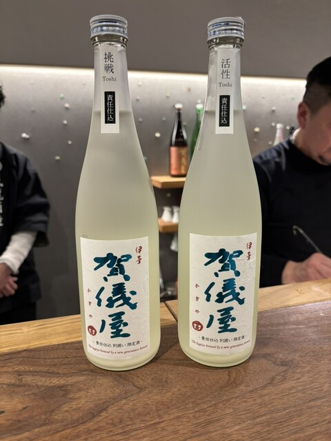 飲み比べでいただいたのは、蔵元さんの弟が作った生酒の新酒と1年熟成酒。。。ラベルにはそれぞれ”活性”、”挑戦”の文字が刻まれておりますが、どちらも素晴らしい味わい。。。同じ製法、原料で作られたという事ですが、一年という月日が産む差分に驚きがありますね。。。