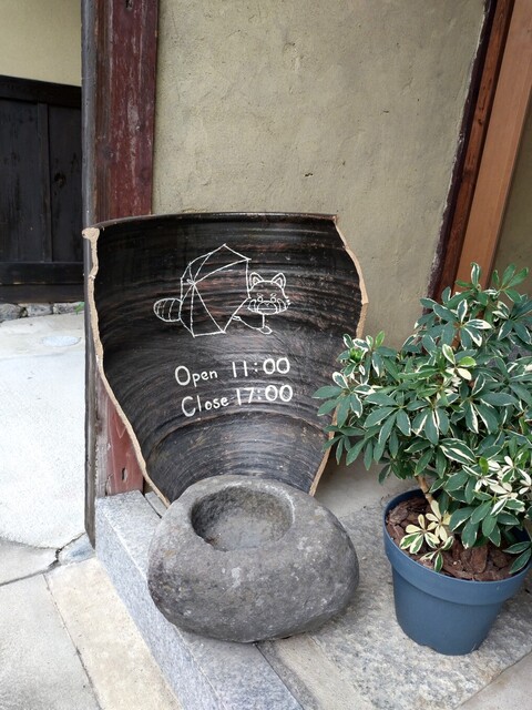 今日は、今年の5月2日で開店4周年を迎えた『Ameagari』さんへ~!! 場所は、宇治橋通り商店街の中ほど、鰻の『ふな栄』さんの前の細い路地を入り、最初の分岐は右に進み、次の分岐を左に曲がって2軒目、小さな庭がある古民家カフェ~!! アライグマの暖簾が目印~!! 洒落た店内は、木の素材を活かしたカウンター5席、6人掛け木製テーブル×1、丸い木製テーブル席に2人掛けソファー席とイス2席の合計15席ほどの席数~!!( ^o^)ノ