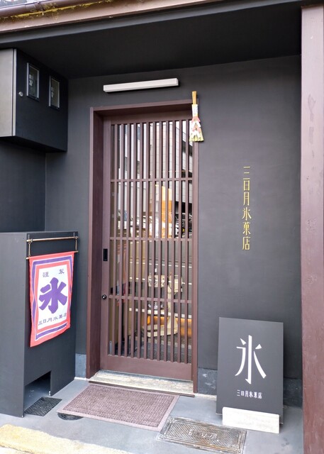 今日は、清水五条の『三日月氷菓店』さんへ今年2回目の訪問~!! 場所は、京阪・清水五条駅から国道1号線を東(清水寺方面)に向かい、東山郵便局の先角を右へ(大和大路通り)進み、2筋目を左に入ったところにある~!! 京阪・清水五条駅から徒歩5分ほどのところ〜!!『三日月氷菓店』さんは、千葉県柏市から昨年の4月に今の場所に移転してきたお店~!! 今日は、近くのコインパーキングに車を停めて、開店時間10時(食べログ記載)となっていたので、9時過ぎにお店に到着!! 店内を覗いたら、とても1時間後に開店する雰囲気に見えなかったので、店員さんに確認したら11時開店とのこと〜!!『食べログ』の情報が間違っていた~!!(☉ ロ ☉;ノ)ノ