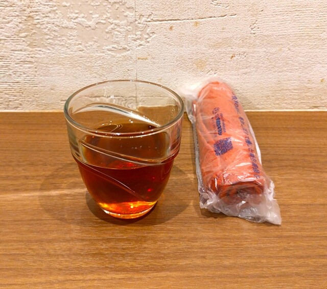 最初に出てきた熱いお茶と冷たいおしぼり〜!!( ^o^)ノ