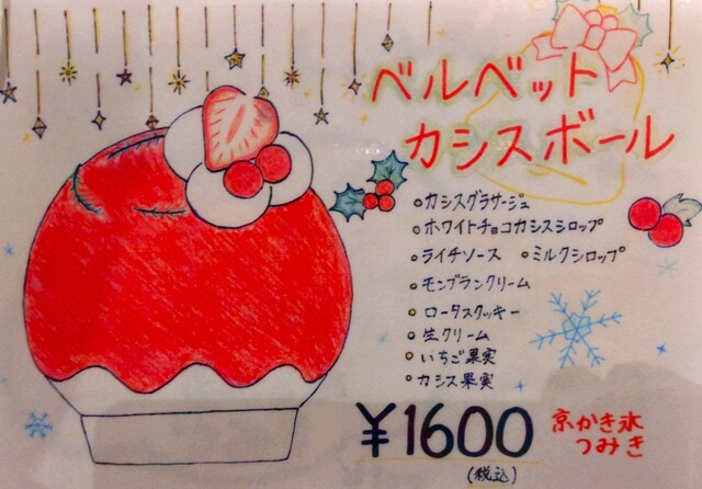 今日も美味しい物を提供してくれた『京かき氷 つみき』さんの店員さん!! いつも親切で丁寧な応対ありがとうございました〜!!『ベルベットカシスボール』のかき氷、めちゃめちゃ美味しかったです~!! 次回も、クリスマスの新作かき氷を食べに、また来まーす!!( ^o^)ノ