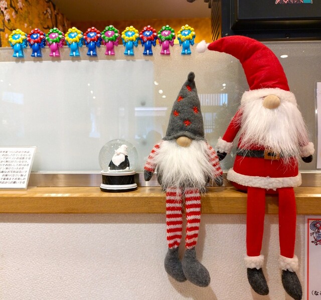 カウンター席の上に飾ってあった『ミャクミャク』のフィギュアやサンタクロースの人形~!!( ^o^)ノ