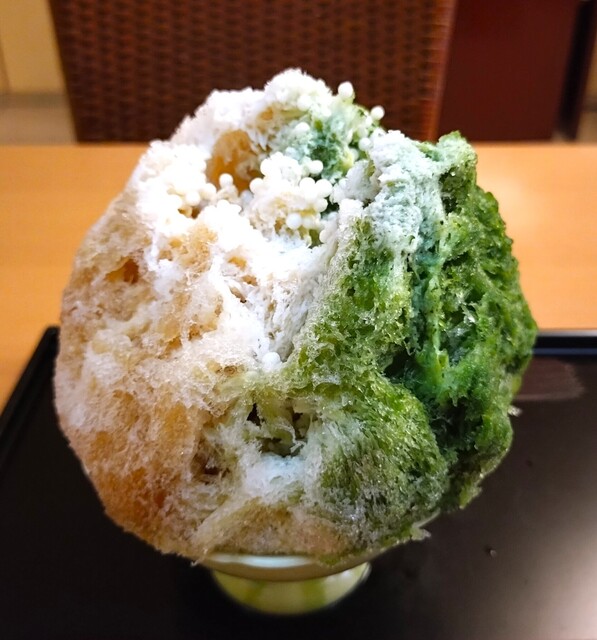 抹茶の苦み、旨み、焙じ茶の香ばしい香り、みぞれの甘みを感じられるかき氷~!!( ^o^)ノ
