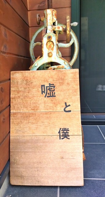 入口にあった『嘘と僕』の看板と昔のかき氷機~!!( ^o^)ノ