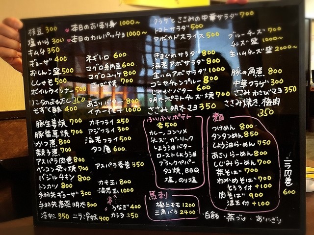 入った所にテーブルが4卓、左にお座敷、奥にカウンターがあり外から見るより広いお店です。お料理は黒板に50くらいギッシリと書かれていて選ぶ楽しみがあります。サラダとおつまみ3品くらいを美味しく頂きました。御宿駅の目の前なので電車待ちにギリギリまでというのも有りですね〜! そして、接客のお姉さん(奧さん?)がとても感じ良くて嬉しかったし、つい焼酎キープしてしまいました。また、すぐお邪魔します!