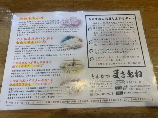 最新の情報とは異なる可能性がありますので、お店の方にご確認ください。詳しくはこちら