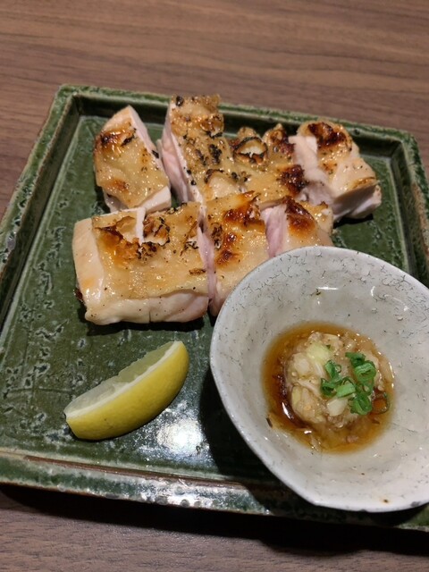 お通しはカンパチの漬けにはじまり、オーダーは刺身(ホタテ、アジ、鰹のたたき)、水茄子、白和え、鶏の塩焼きをオーダー