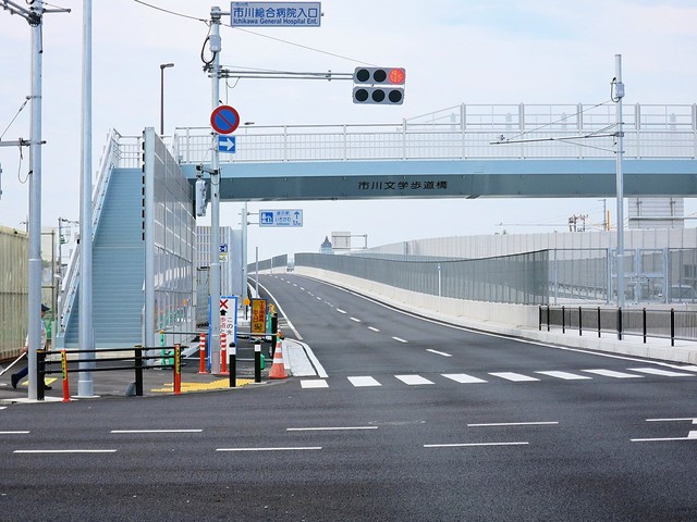 市川総合病院入り口交差点w市川文学歩道橋w