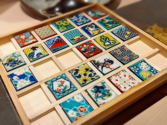 檜の箸がセットされてるのですが九谷焼の箸置きコレクションから自分好みのものを選ばせてくれます。