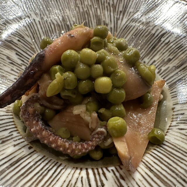 ヴィシソワーズから始まり、ウニのカッペリーニ、甘鯛のグリルは蕪のソースも甘鯛のとろっカリカリな食感も素晴らしかったです。メインはポークのヒレを選んで正解!ロゼの美しい溶けそうなお肉を2種のソースで、イカはグリンピースと煮付けてイカの香りと旨みでワインが進んじゃいます。