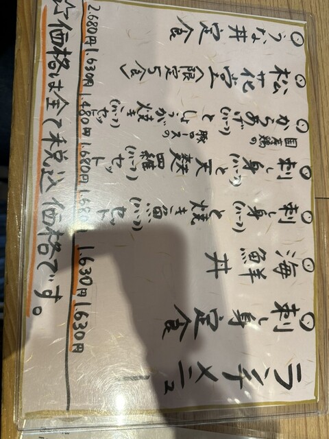 昼はランチメニューがあり、格安で海鮮が食べられます。刺身定食、海鮮丼定食、焼き魚定食、メニューは仕入れによって日替わりですがいつだって旬のメニューを美味しく出してくれます。ご主人とホール担当の女性二人で回されてることが多いので混み合うと少し時間かかります。時間に余裕持ってくるのがオススメです。