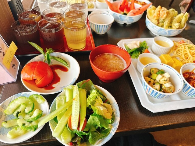 夏の終わりに伺うと、とうもろこしごはん、ゴーヤや花オクラのサラダ、キャロットラペ、ナスの煮浸し、甘長ししとうの天ぷら、韓国カボチャの天ぷら、などなど、まだまだ夏を感じる野菜メニューがたくさんでした♪