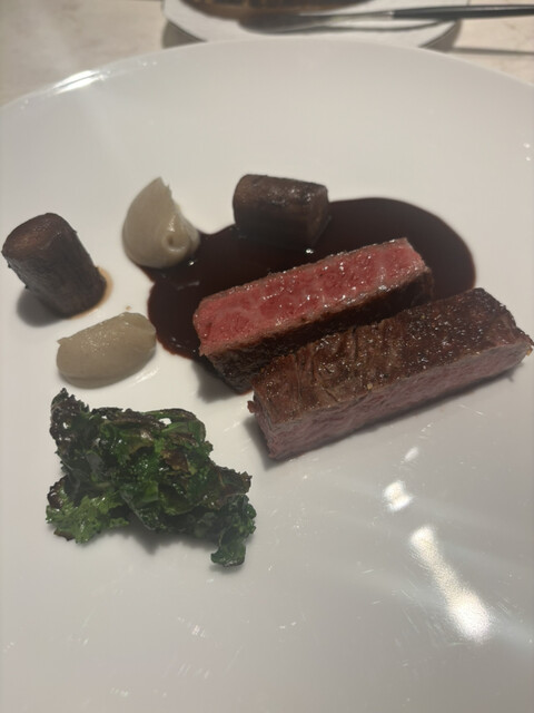 金柑に合いますね。肉料理のサーロインは火入れがよく、サシも丁度いい。