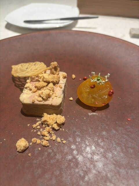 なめらかなフォアグラのテリーヌ。金柑の甘さとマッチしていい。