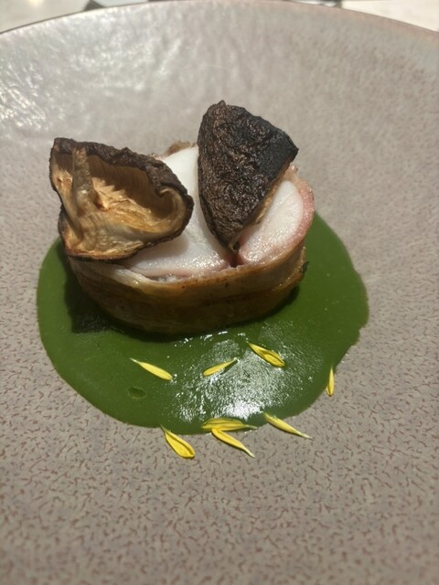 魚はクエ。クタッとさせたポロネギと合わせていました。ネギが甘い。