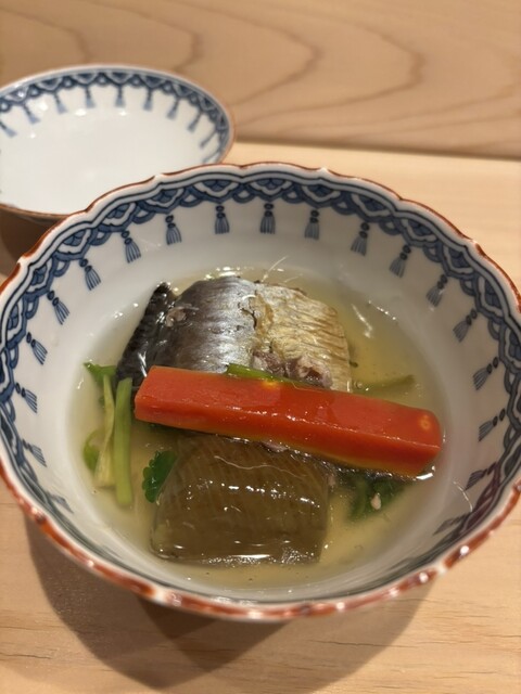 お椀:海老のしんじょ 海老身がコロコロっとしんじょの中にありました。美味しいな。 出汁も好み。