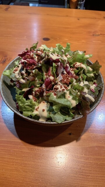 まずはシンプルなサラダ。ドレッシングがとても美味しい。
