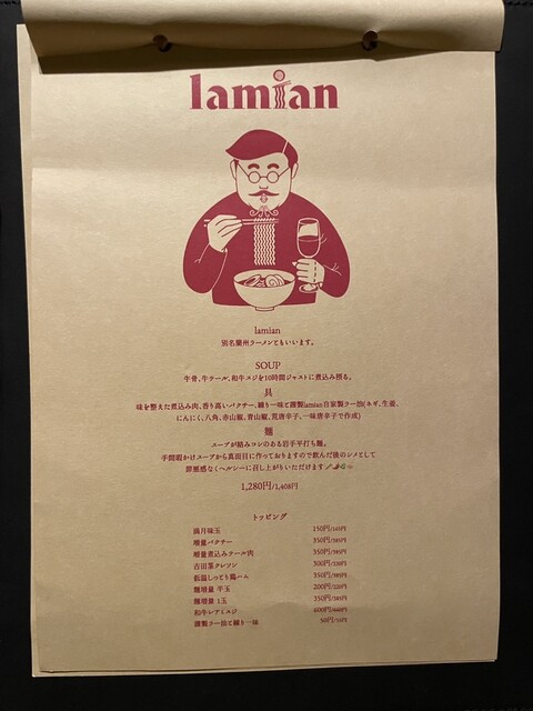 看板メニューは〆のlamian(蘭州ラーメン)。