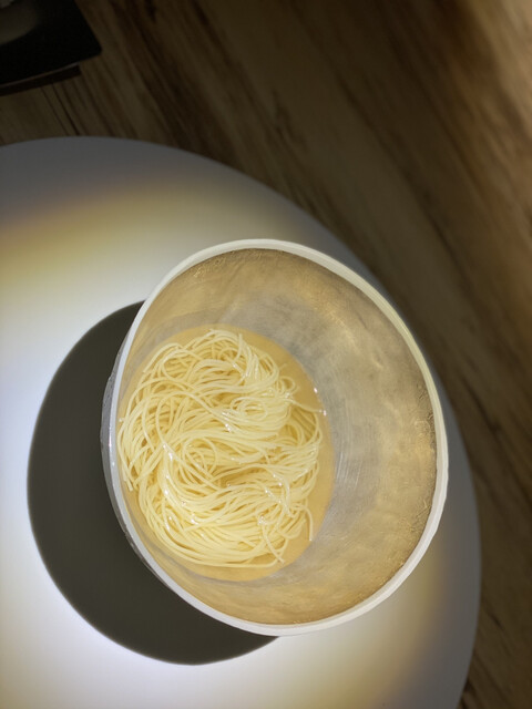 住所非公開の「トレイス」。河島シェフが生み出す料理は、まさに唯一無二の「河島ワールド」。玉ねぎのスープから始まり、一皿ごとに驚きと感動が詰まっています。鳩のフライドチキンは、これまでの人生で出会った鳩料理の中で間違いなく一番の完成度。イワシをミキサーでスープにし、カッペリーニと合わせた料理は言葉を失うほどの驚きの一皿でした。また、活オマール海老を目の前で調理しスープに仕立てる技術には圧倒されます。一皿一皿に素材の旨みを最大限に引き出すシェフの技術と美意識が感じられ、感動の連続。美味しいだけでなく、美しい味わいに心奪われる素晴らしい時間でした。