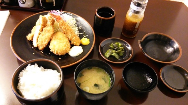 エビフライがプリップリで一番美味しかったかも。で、コロッケ、とんかつの順。