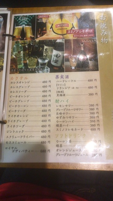 お酒ほとんど飲めないためドリンクだけ少し点数さげております。