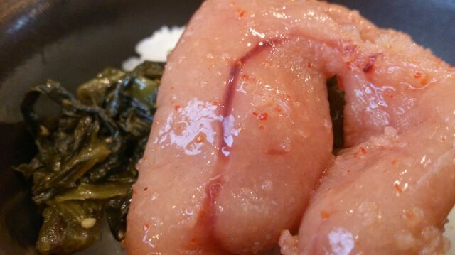 さっそく明太子と高菜たっぷりで贅沢にご飯を頂きました。