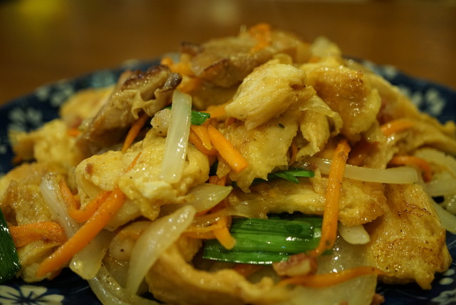ぷるぷるのお麩に玉子が絡まって、シャキシャキ野菜と一緒にうまー。