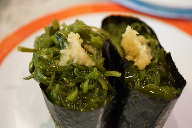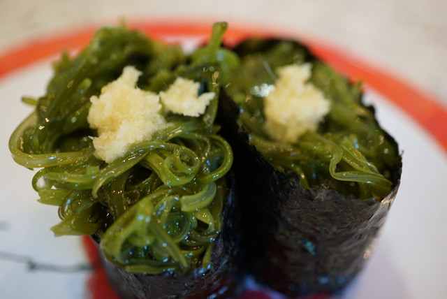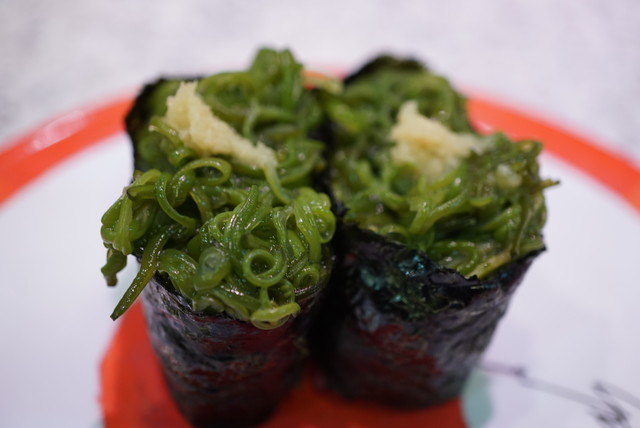 このところお値段&お味が高め安定ですが、100円のメカブ軍艦もさっぱりおいしかったです。