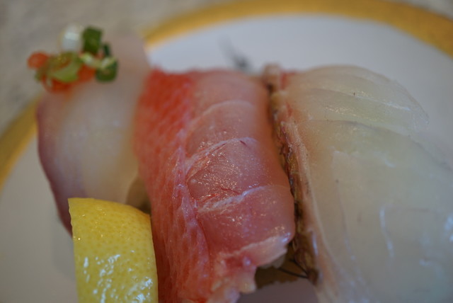 白身三点盛(左:アイナメ、中:カンパチ、右:平目)