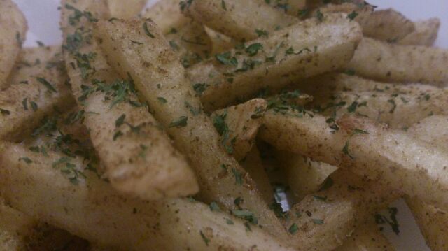 ポテトフライはカレー風味でビールに合います!いったんワインに切り替えたのに、またビールをお代わりしてしまいました。