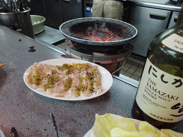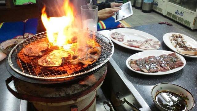 肉の油がしたたり、煙を上げて肉へ戻ってくると