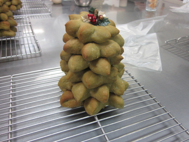 太陽型に作ったパンを重ねているだけなんですけど、ツリーに見えますね・笑