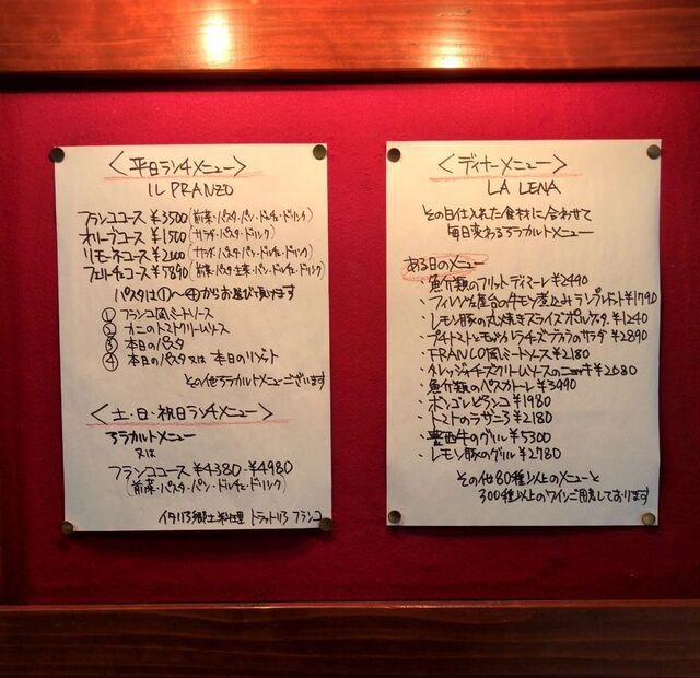 全体的に満足感の高いランチコースでしたが他に1500円(サラダ、パスタ、ドリンク)、2000円(前菜なし)、3500円(主菜なし)のコースがありかなりコスパが高いような。再訪は決定!