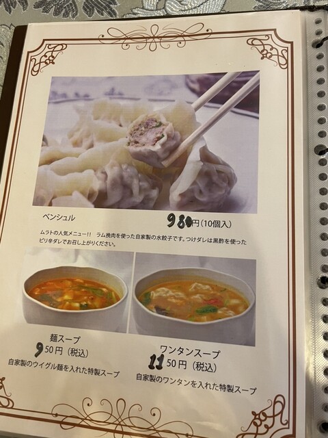 ベンシュル(水餃子)が前回気になって頼んでみた。黒酢を使ったピリ辛ダレで食べていたんだけど結構独特な味がして…羊肉の臭みなのかなぁ?
