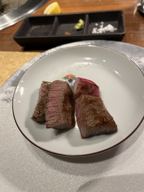 前半は通常の焼肉店では味わえない、聖護院カブのポタージュやタン下の赤ワイン煮込みなどフレンチのようなお皿が続きます。お肉も通常より飼育期間の長い36ヶ月の雌牛ということで柔らかく、脂もさっぱりとした絶品のお肉を堪能できます。