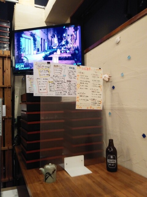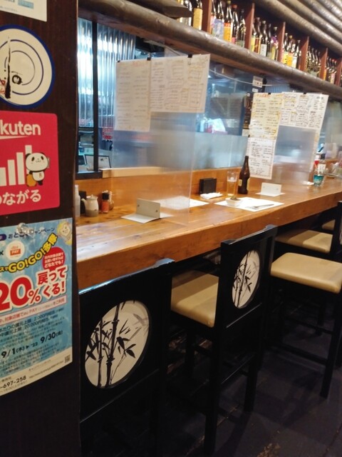 店内はカウンター席メインでテーブルも有り、簾の個室風が1つかな?