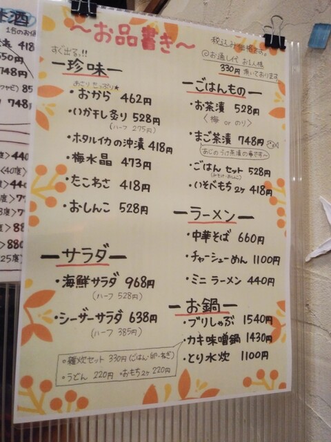 「お刺身おまかせハーフ300円」なんてメニューに書いてあったけど。