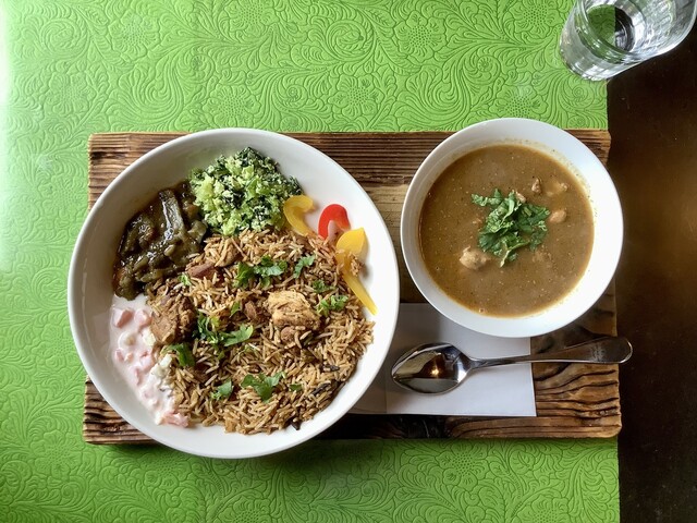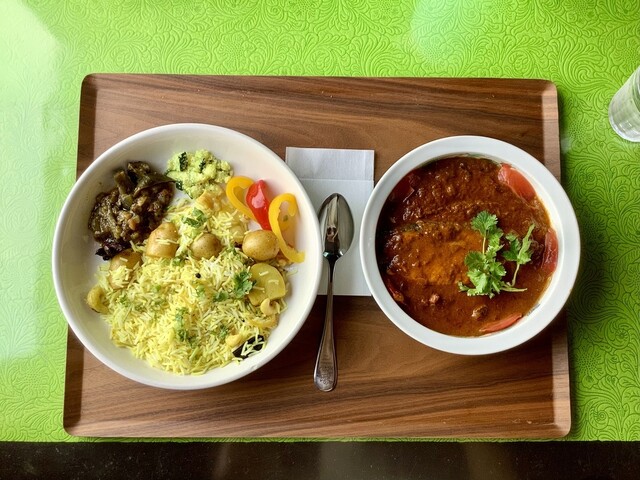 ……ハーフ&ハーフのライスはチキンビリヤニとナッツプラオ。