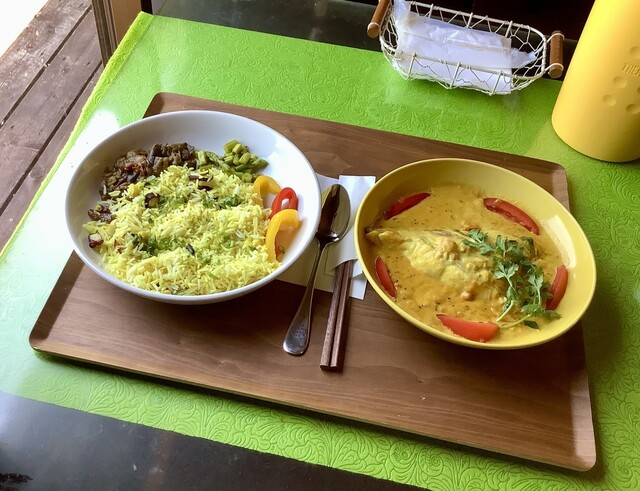 『マダイのタミルカレー+きのこのプラオライス』をいただきました☆