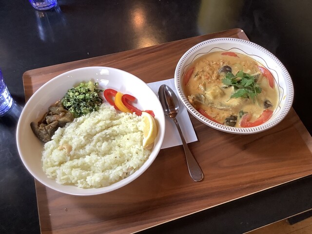 ◆〈4枚目〉エビのマッパスときのこナッツプラオ・白米のハーフ&ハーフ