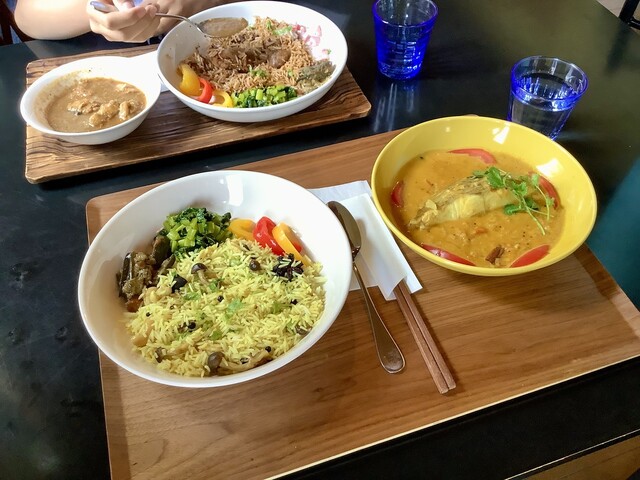 【8月10日(木)】上がチキンコランブ&チキンビリヤニ、下が真鯛のマラバール&きのことナッツのプラオ