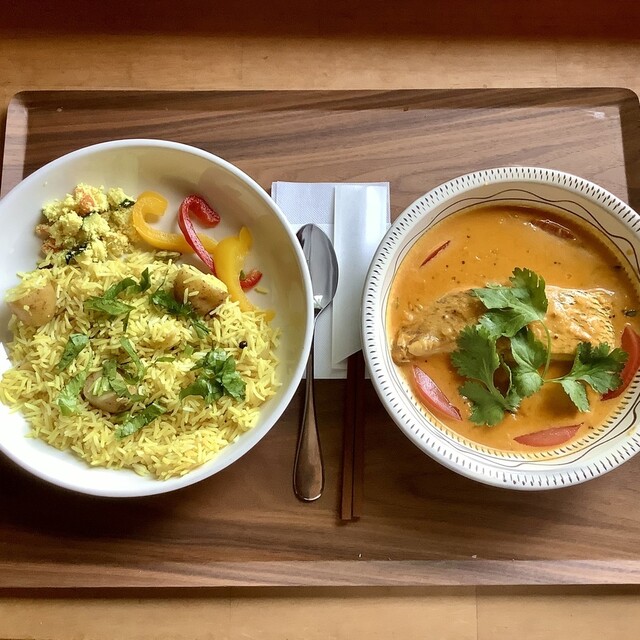 ◆フィッシュマラバール(カレー)とプラオ(インドの炊き込みごはん)