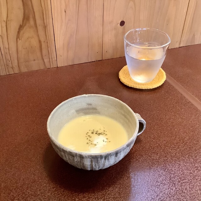 【2021年7月9日(金)】週替りランチのスープ。この日は「枝豆のポタージュ」でした。