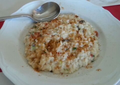 真鯛のリゾットは真鯛の出汁のおいしさも充分なんですが、それに細切れのオリーブや野菜が よい歯ごたえになって。