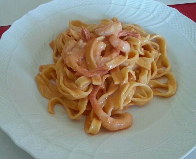 甘えびのフィットチーネは海老の繊細な甘さがクリームと平麺パスタによく絡んで オマール海老のようなリッチな味に。でも飽きませんよ。